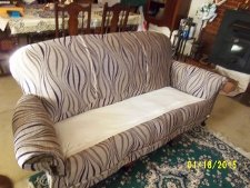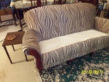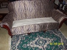 Couch with back and bottom lining removed. Lining, springs, ropes and padding were dry rotted and/or sagging. ![]() |